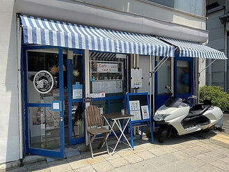 阪神本線大石駅出口より徒歩約5分にある青を基調としたお洒落な外観が特徴のカフェ。